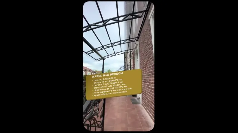 Задача компании – сделать надежный, функциональный и долговечный навес из поликарбоната по требованиям заказчика. Для этого разработана система изготовления, предусматривающая контроль материалов, каждого элемента конструкции, соблюдения технологии монтажа. Все это показано в видеоматериалах.